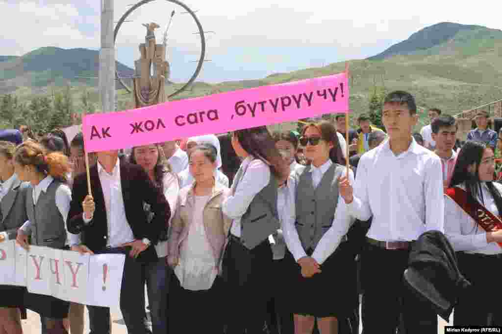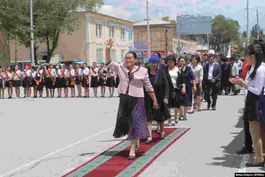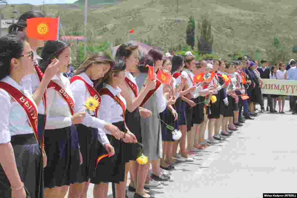 Көрүүчүлөргө концерттик программа тартууланып, мектеп бүтүрүүчүлөрү өздөрү флеш-моб уюштурду.