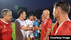 Садыр Жапаров катышкан ардагерлердин футболдук беттеши башталды