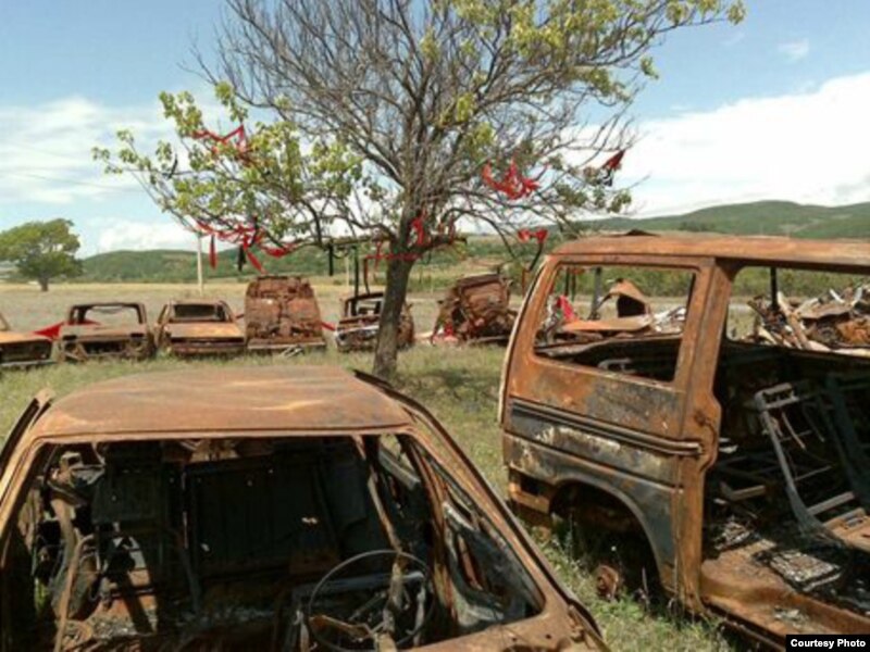 2008-жылдын августтундагы Грузия-Россия согушунда өрттөлгөн машинелер. Цхинвали аймагы. Чехиянын "Mlada Fronta Dnes" гезитинин кабарчысы Томаш Полачектин фотосүрөтү. Түштүк Осетия. 26-август 2009