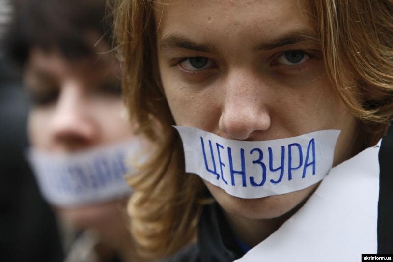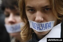 "Украинадагы цензурага жана диктаторлукка каршы" демонстрациянын катышуучулары. Киев. 7-октябрь 2009